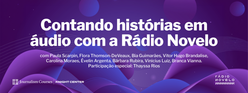 O novo curso gratuito “Contando histórias em áudio com a Rádio Novelo”, produzido pelo Centro Knight e pela Rádio Novelo, te mostra o caminho completo para desenvolver habilidades em áudio-jornalismo roteirizado. O curso acontece de 4 a 31 de maio; é totalmente online e voltado para todos que desejam contar histórias em áudio, de estudantes a jornalistas, pesquisadores e comunicadores.